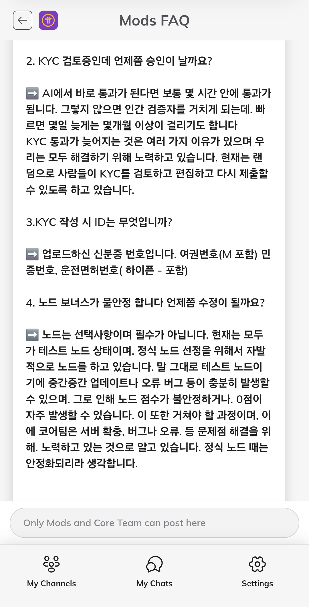 다음은 KYC 승인 대기 중인 사람이 많으므로 파이코인 질의센터에서 확인한 답변입니다.